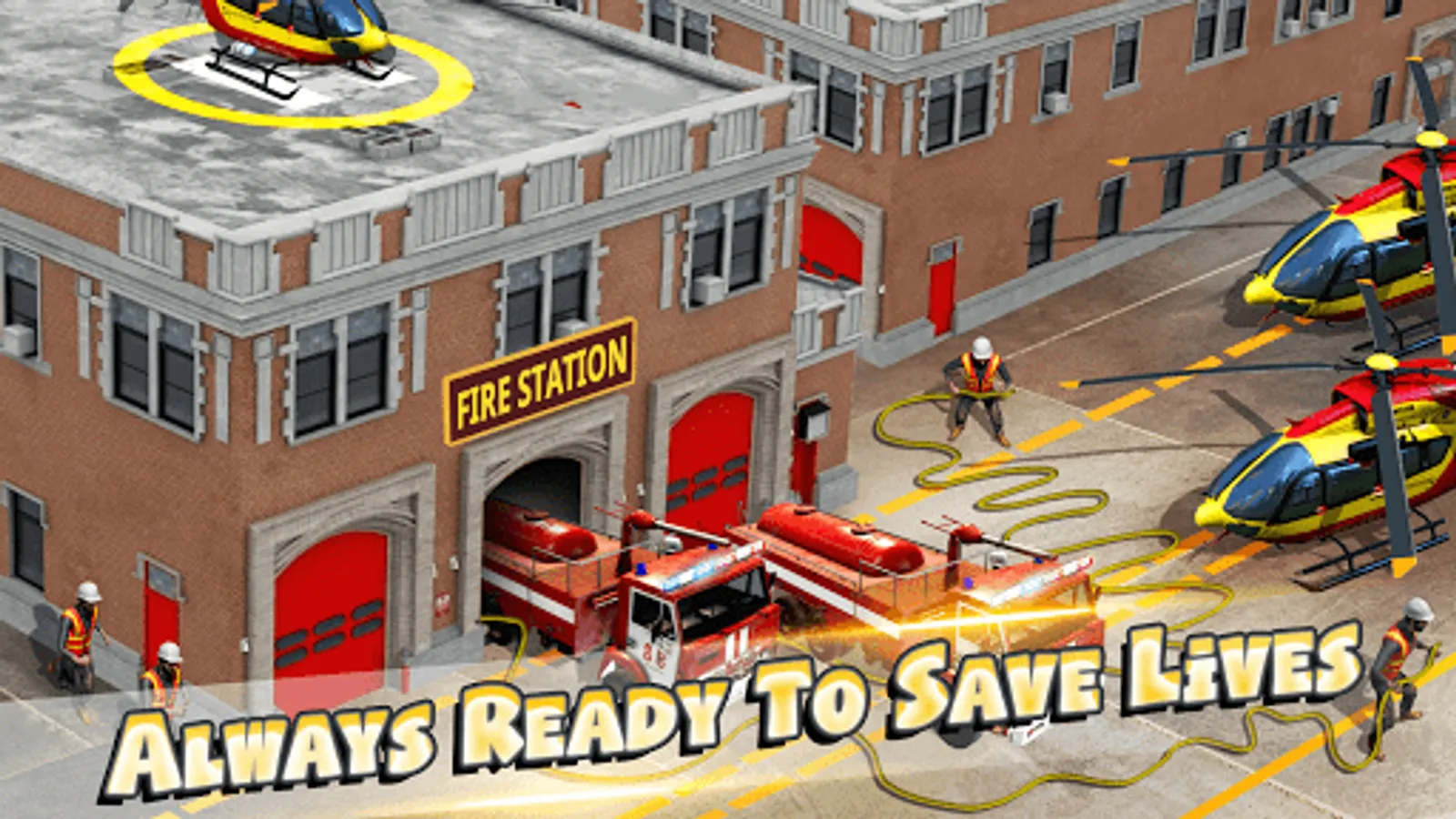 American firefighter superhero 911 rescues people and animals from dangerous situations such as vehicle accidents, building collapses, and wild burning fire in this fire fighter simulator emergency game. In Fire Fighter: Rescue Games turn on the fire rescue siren and drive an American firefighter truck to reach the fire emergency destination taking a firefighter truck and helicopter from headquarter and reaching an emergency place at the minimum possible time.