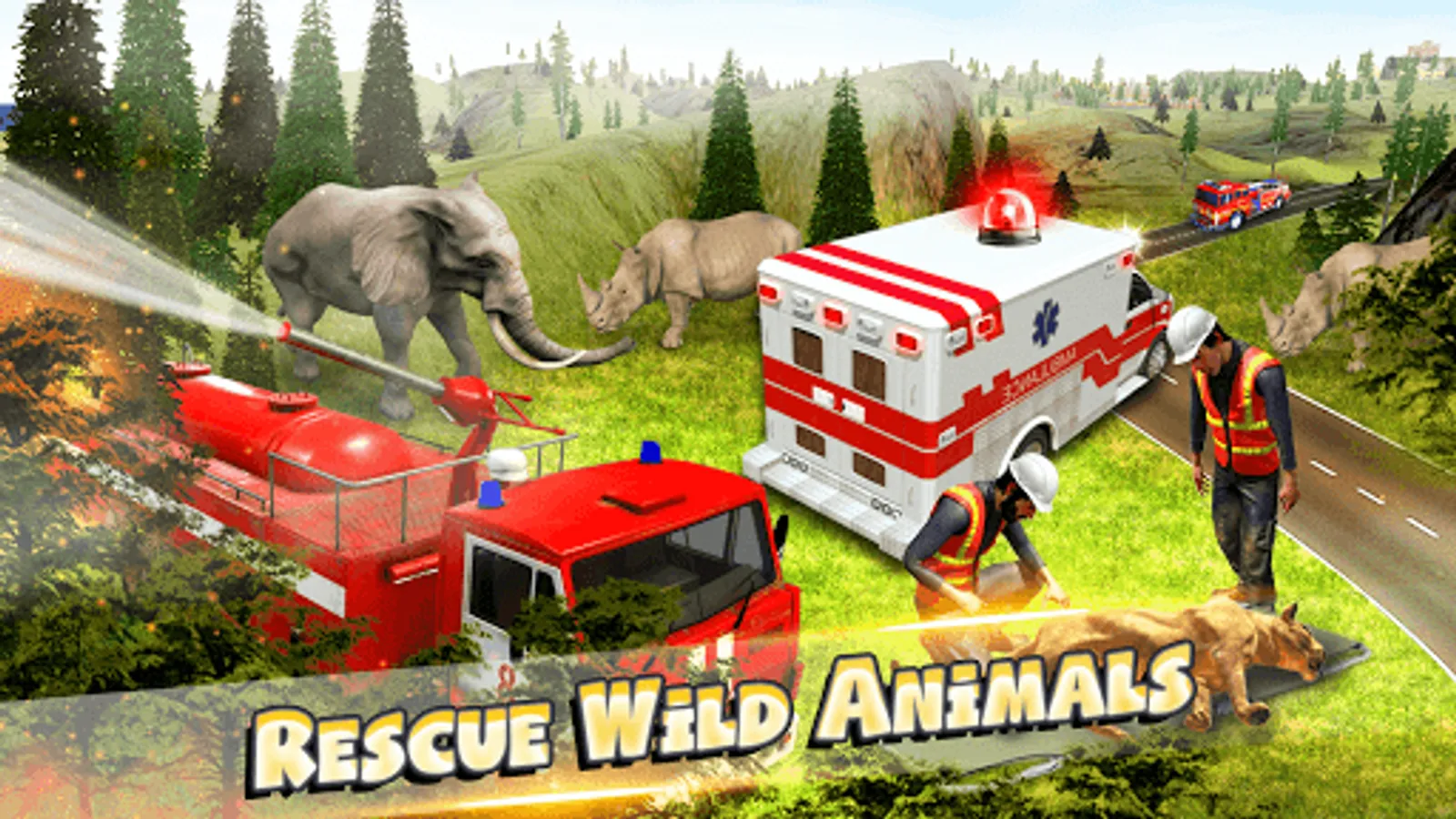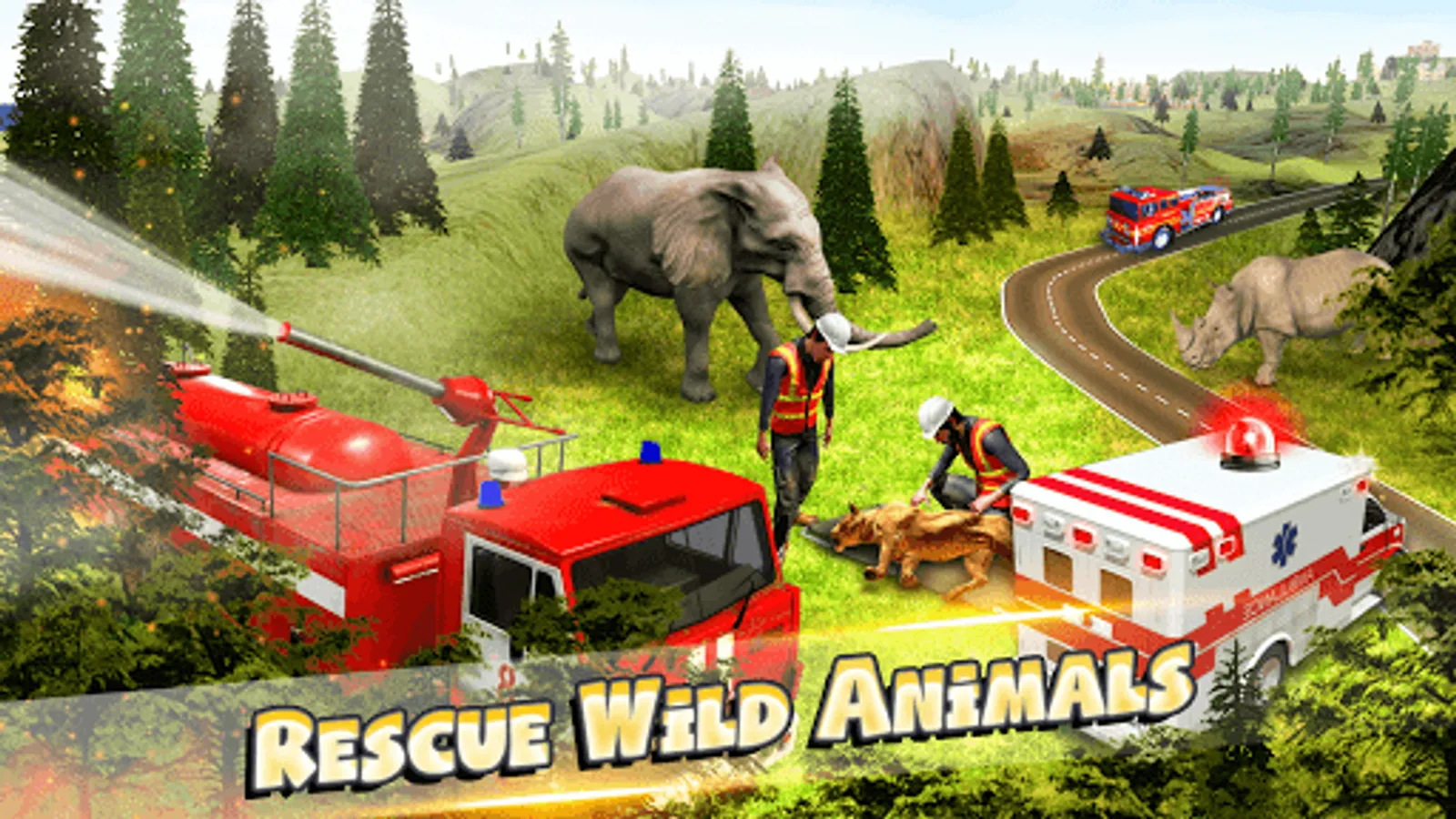 Wildlife is on the RED ALERT emergency. Fire fighters need to be reached for 911 FIRE EMERGENCY. Animal life and jungle caught the fire. The only way to get out of this critical time is to reach the dense forest of Australia use firefighters to get rid of the fire and rescue animals. Invoke your inner Firefighter Hero and fight with fire. You have double responsibilities, watering the fire with huge fire fighter trucks and starting your Fire Truck Engine and rescue siren, rushing towards the fire, and saving lives of wild rescue games.