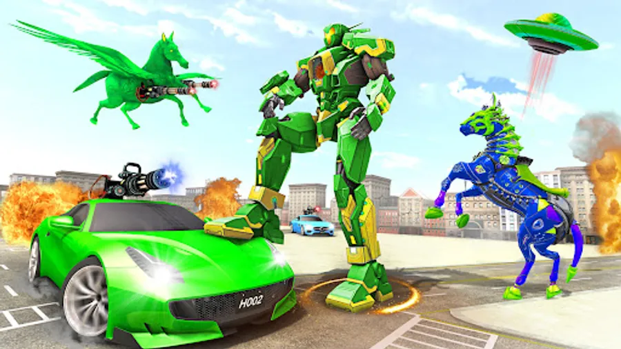 In Robot Car Transformer Supercar fights mafia robots that want to take control of the city in the United States. In this auto robot transformation game, you may train your robot to combat mafia robots. In future robot games, you can control the transformation and shooting of automobiles and robots, or you may go on a shooting rampage with transforming robots. In auto robot transforming game 2020, take on several transforming robot war games tasks in one fresh new big criminal city robot transforming the game. Play futuristic automobile change robot shooting games, as well as rescue survival robot and adventure casual games in the year 2020.