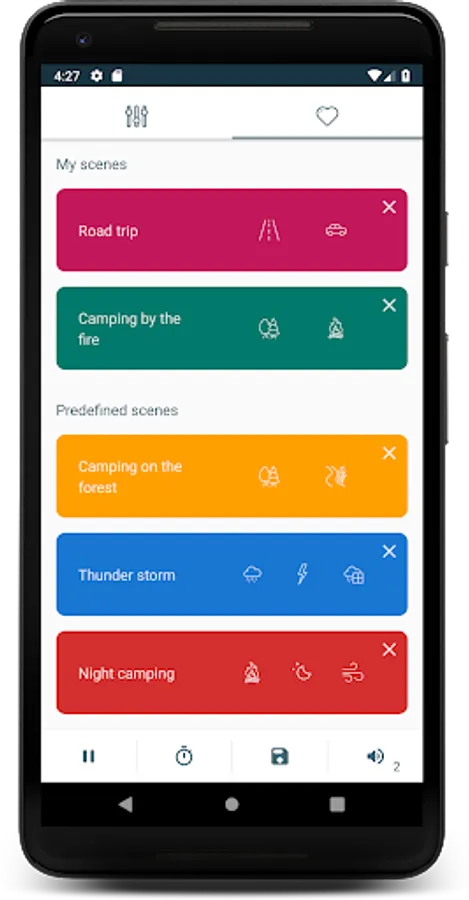 ⭐ Save your carefully created scenes to listen to anytime later or enjoy our predefined scenes provided with the app.