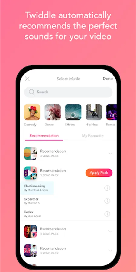 Twiddle can automate the video editing process by recommending the right music and sound effects at the right time within your stories and posts!