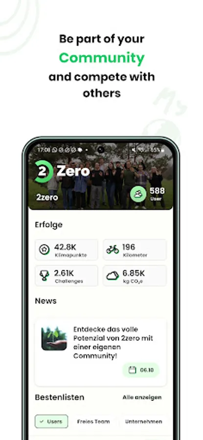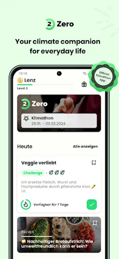 Become part of a Klimathon or our 2Zero community and support our Sustainability Promise. 2zero is the perfect sustainability app for a start into a CO2 neutral future.