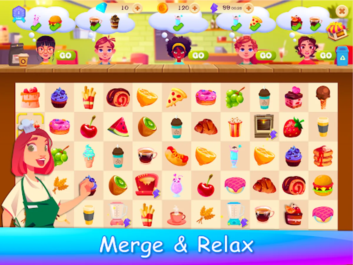 Test your merging skills with countless fun and challenging tasks. Level up, unlock new areas, and watch your cafe community flourish.