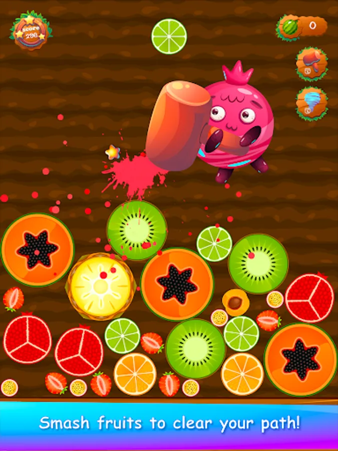 Be mindful of each move with precision and flair. From the tiniest to the most magnificent, you're getting closer to the big goal! Stay cool under pressure, even when cornered. Break free by hammering fruits or stir up a storm to shuffle the odds.