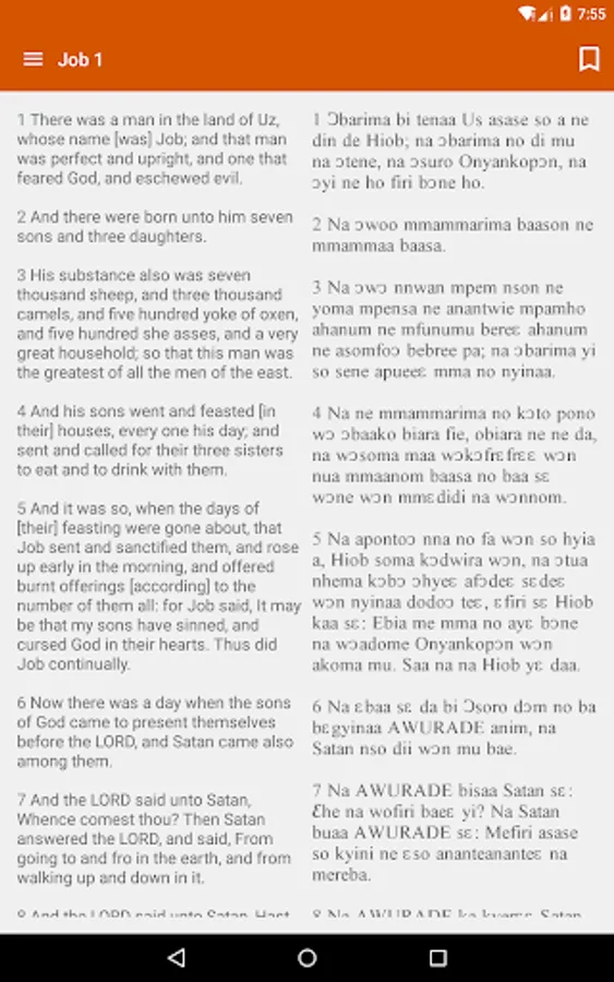 The Twi Holy Bible - King James and Twi (Ghana) Versions is a beautiful, easy to use, full featured app designed for quick navigation, easy note taking and powerful Bible study, easy powerful search feature. It gives you the Bible without using your Data.
