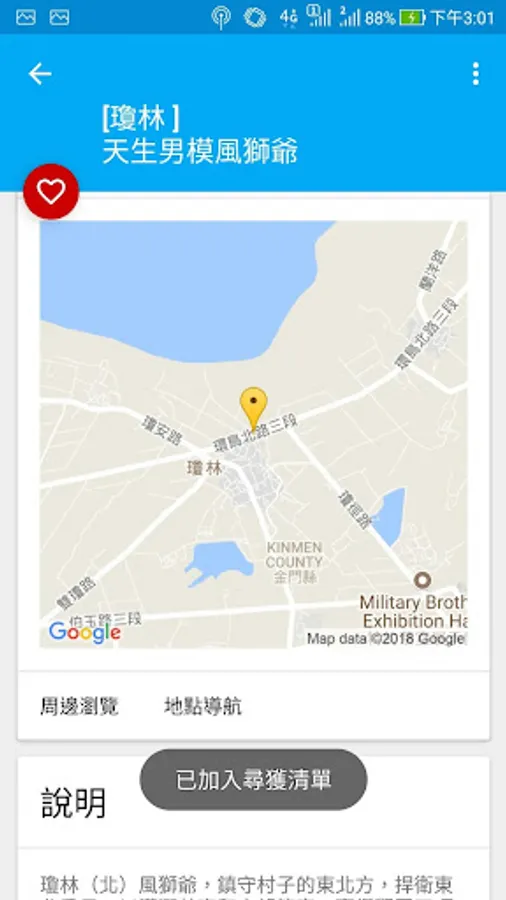 * 點擊儲存圖示, 將您最想前往或已到訪的風獅爺加入清單中
