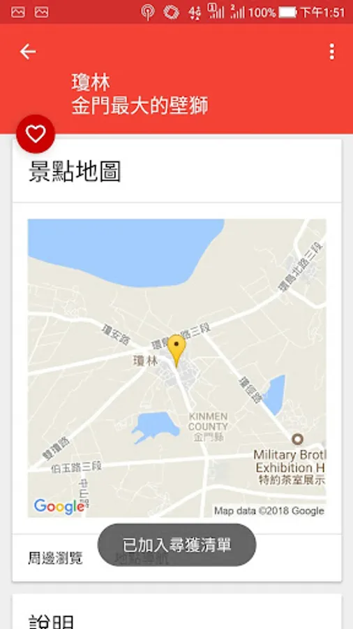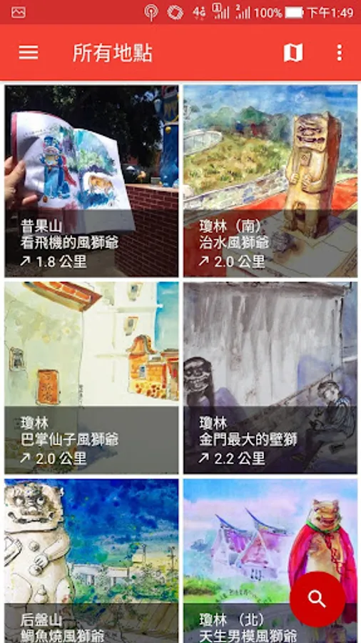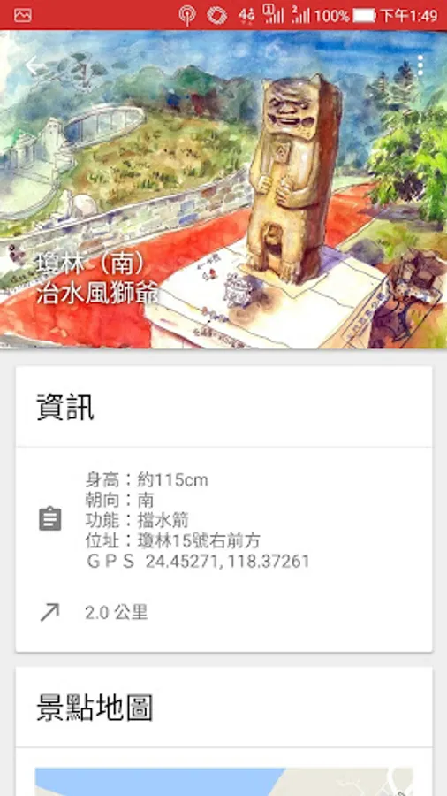 * 自動依據使用者所在位置,排列最接近的風獅爺景點。