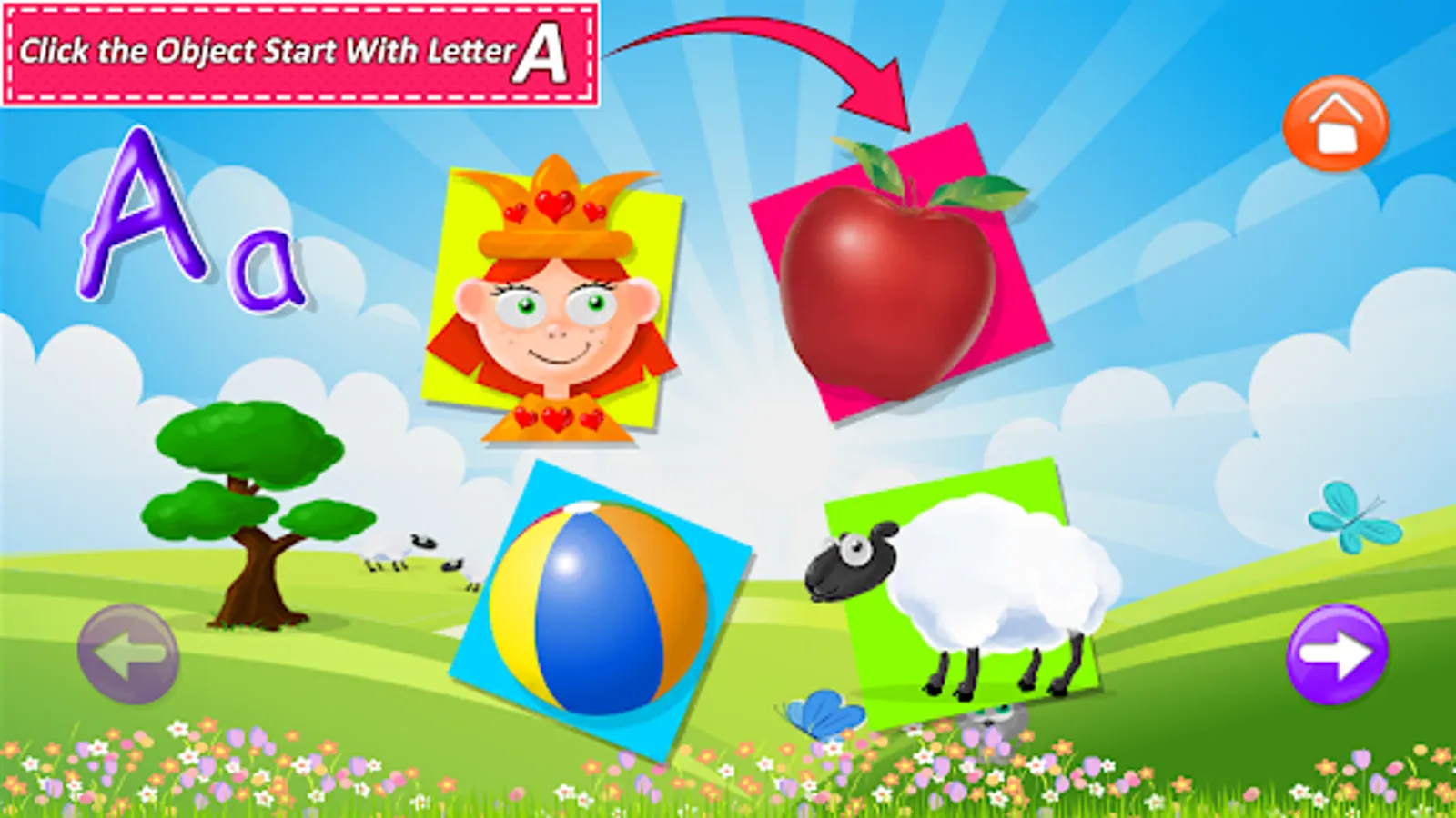 Multiple Choice Option for children to choose the right object/Icon of an alphabet