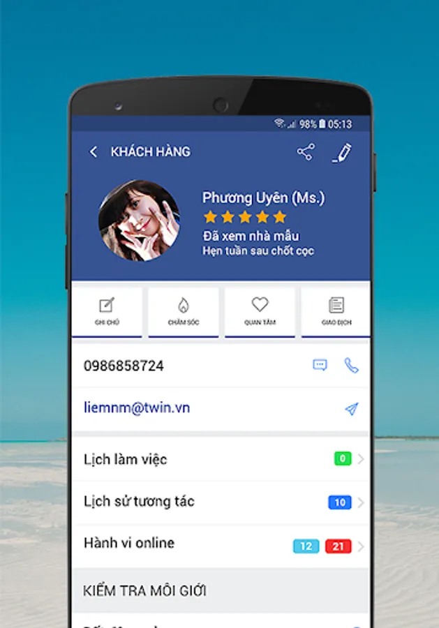 Twin CRM designed specifically for salespeople Property with the following functions: