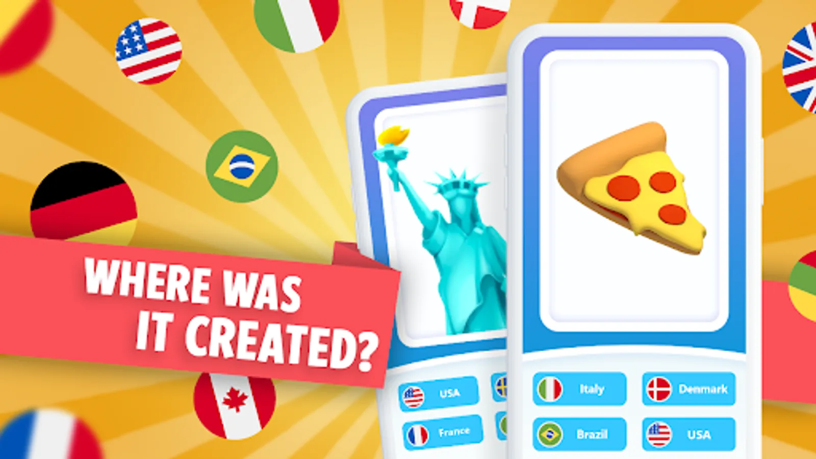 World Quiz is a new free Guess the Country game from twin/click team. Can you guess which country was created? In this world country quiz from twinclick you have to guess in which country it was invented. World Quiz is exciting world quiz in which you have to answer the question: where was it created?
