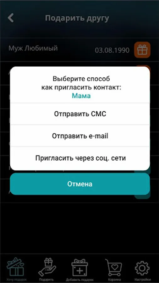 The gift you have chosen becomes invisible to other contacts of the hero of the occasion.