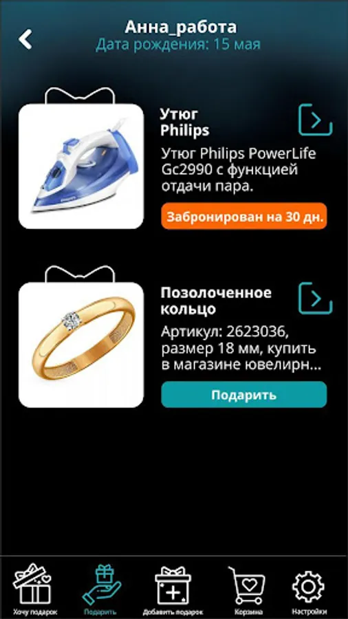 At the same time, the congratulated will see his list unchanged and will not know in advance who and what he decided to give him.