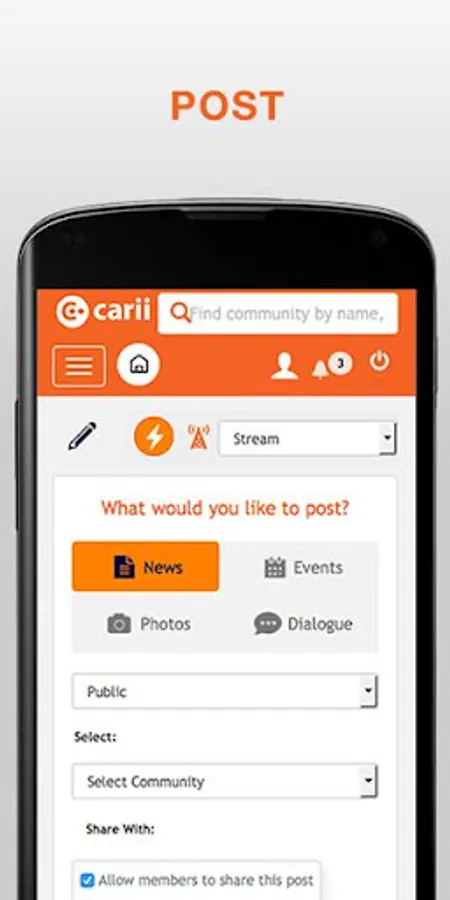 Carii’s hybrid open/closed platform, on web and mobile devices, is a consolidated solution with functionality for setting up communities, inviting members, sharing news, photos, videos, documents, events and dialogues and linking communities.