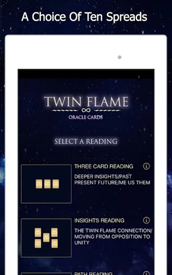 Created by Cassady Cayne The Twin Flame Oracle Card app contains 82 cards with high vibrational, on-point messages and beautiful imagery to give you the feedback, advice and instant answers you need right now, no matter where you’re at