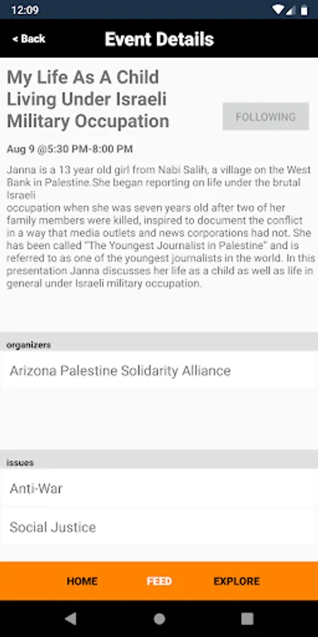 The AZ Resist app allows you to search for and follow issues, organizations and events that are important to you. Your feed will keep you up to date on what events are coming up.