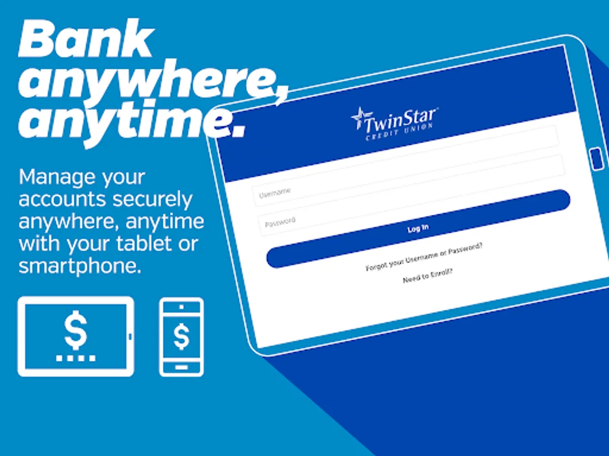 TwinStar Credit Union's mobile banking app gives you all the features of online banking with an improved look and simplified interface. Manage your banking from anywhere, anytime with our secure mobile banking.