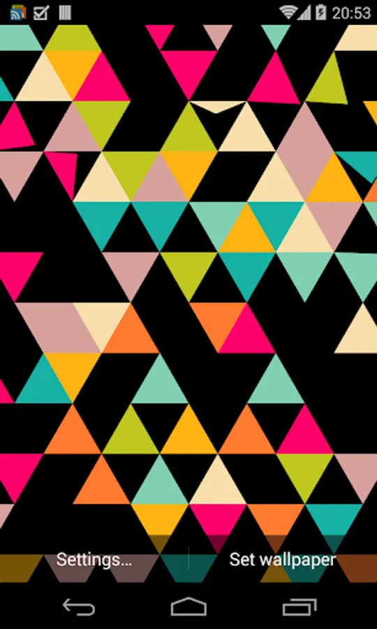 Colorful triangles live their own lives flipping all over the screen. Just pick your favorite colors in setting and enjoy our wallpaper.