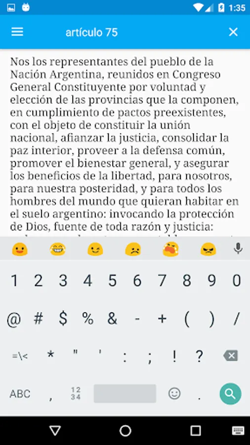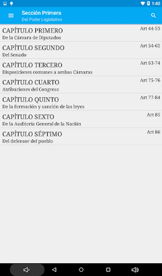 Have access to complete and current Constitution of Argentina through is great application that has the following characteristics: