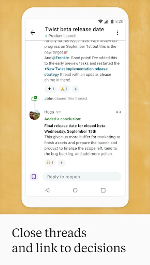 - Twist threads never bury important information in an avalanche of chit-chat (like Slack)