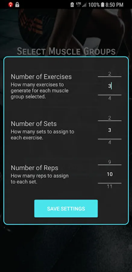 - Select how many exercises you would like to perform for each exercise.