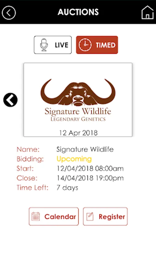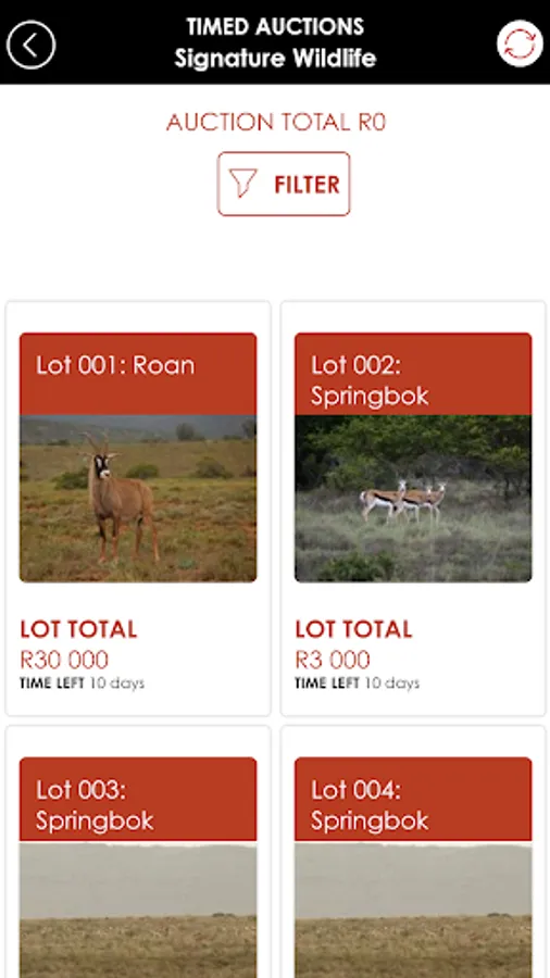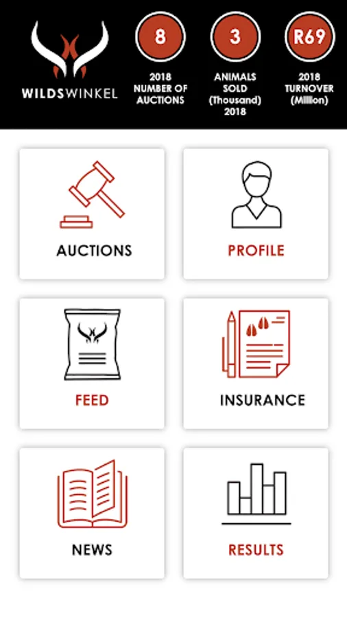 Wildswinkel app provides a simple way to access information about Wildswinkel auctions and direct sales. This includes details about each auction and its catalogue. Direct sales listings are navigated by scrolling or selecting specific species. Contact Wildswinkel from the app.