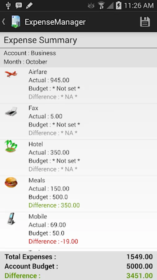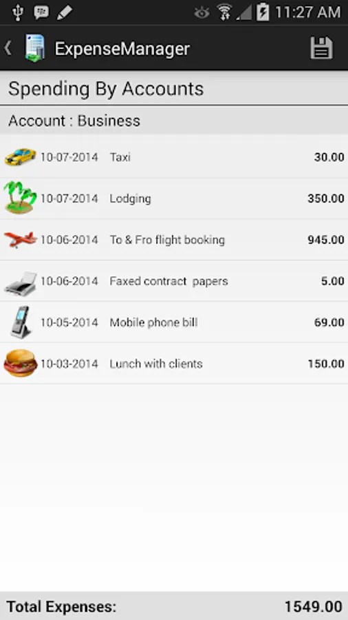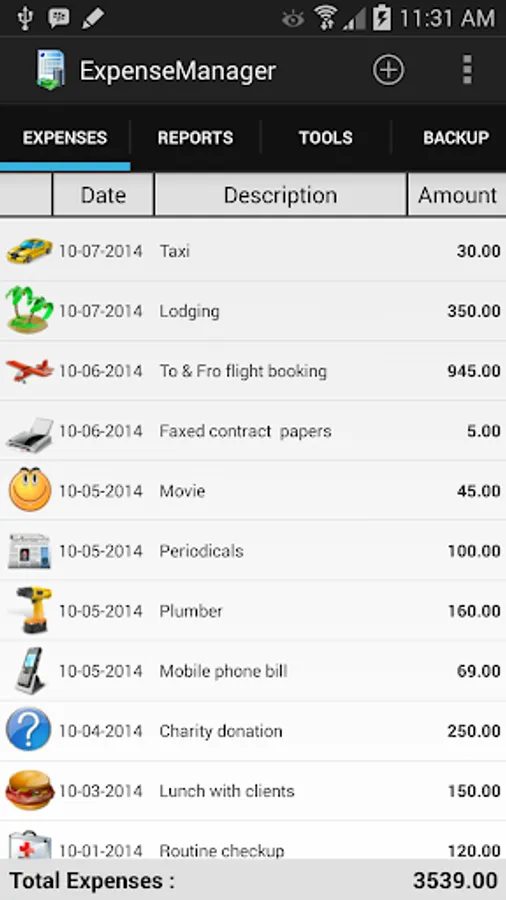 1. Keep record of your Expenses on the go. Following information can be stored for each expense item: Account, Date, Description, Payment Currency, Amount Paid, Exchange Rate, Amount, Payment Method and Category.