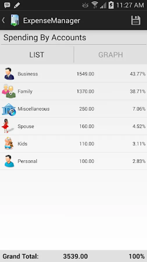 2. Create and track expenses for an unlimited number accounts like Business, Personal, Family, etc.