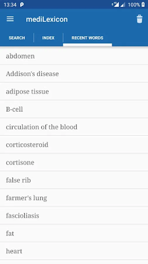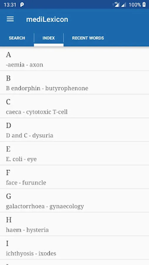 If you know the spelling of the word (even only a few characters) you can use the 'Search' feature to quickly find more information about the word or you can browse the entire dictionary by using the 'Alphabetical Index'.