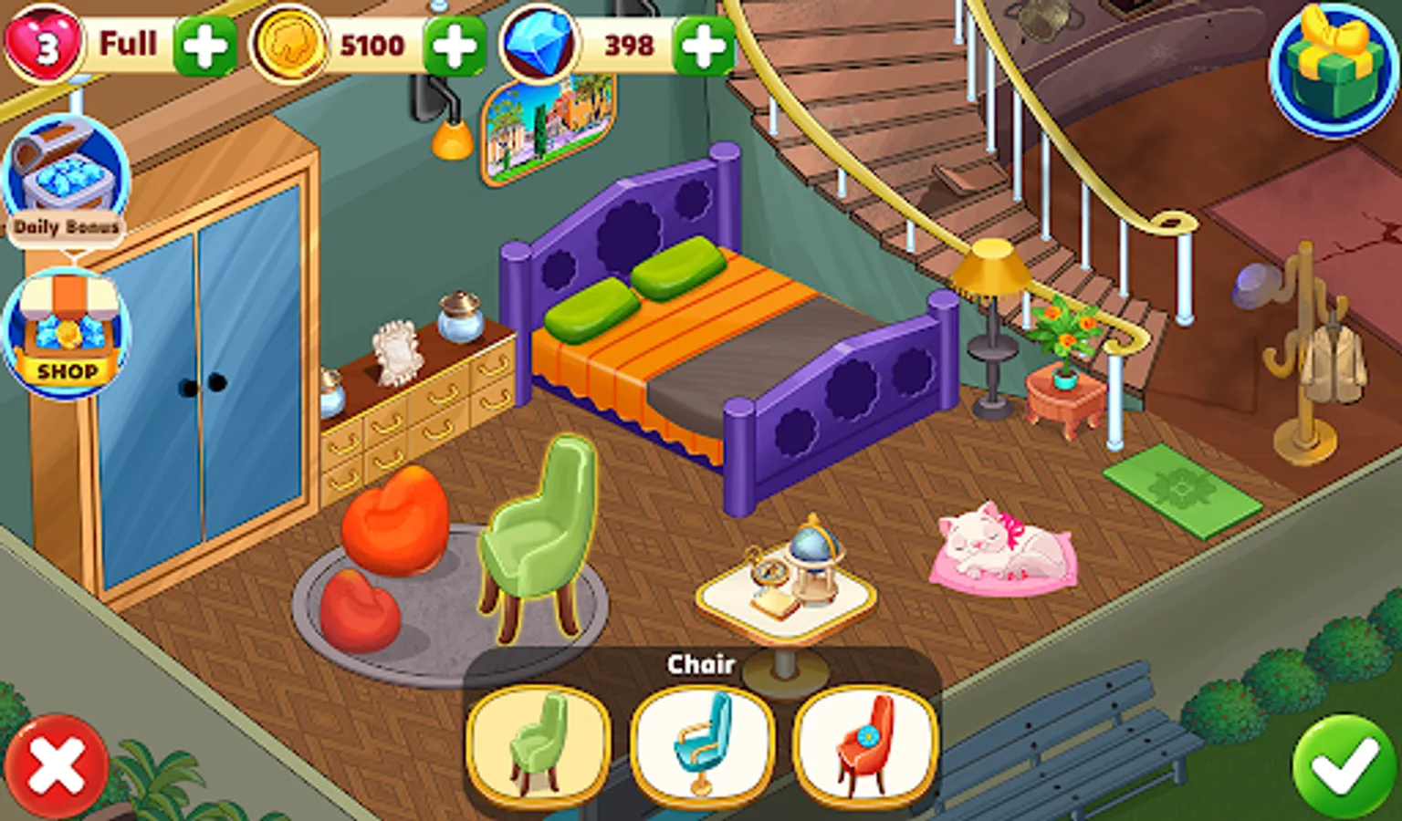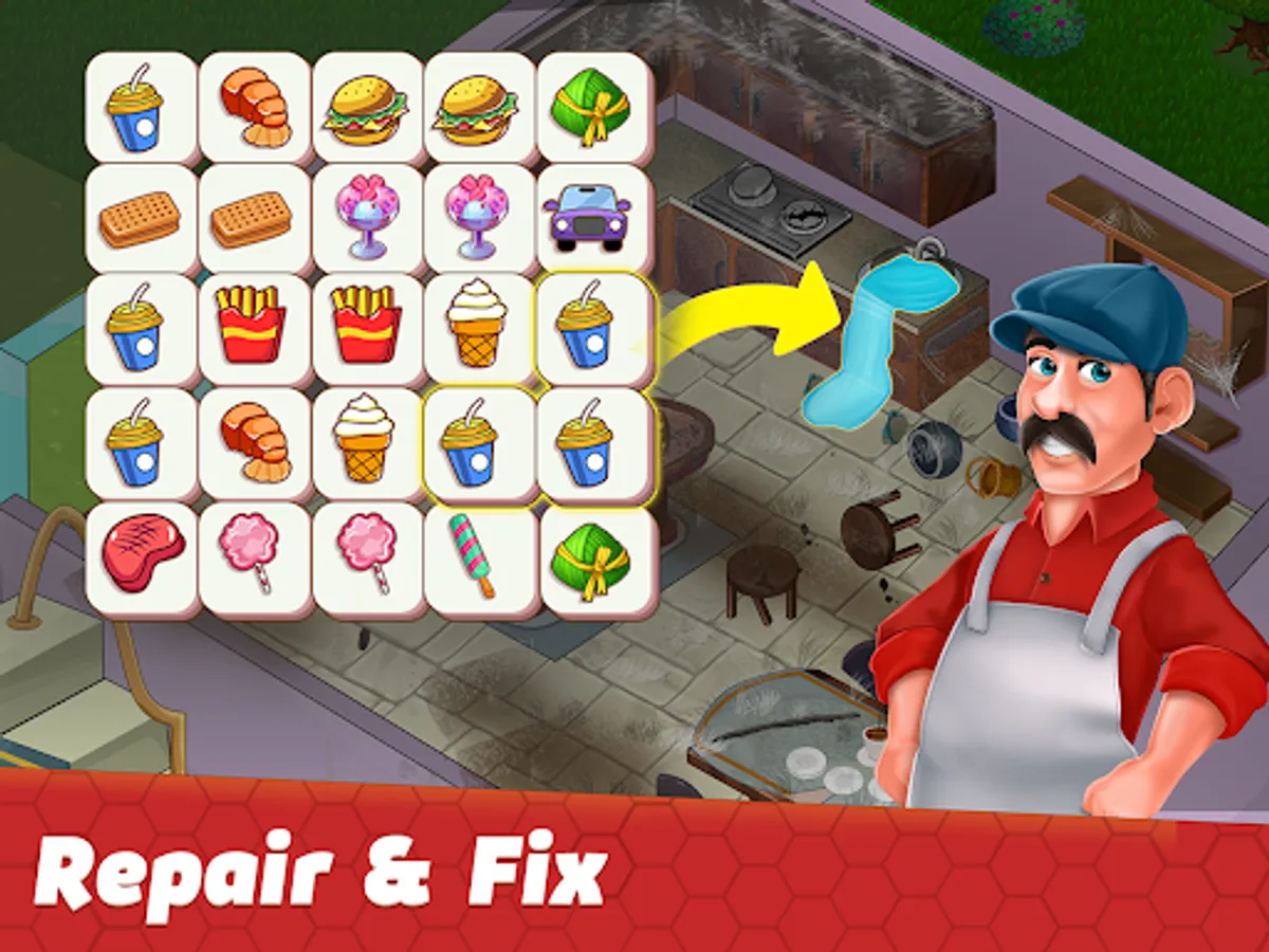 This game has a classic tile match game – a series of challenging tile puzzle. All you have to do is match 3 tiles of same design to clear the level. Hence, we call is a decorate match 3 game. Once you clear the level you will get coins, which then you can use for home design and home redecoration.