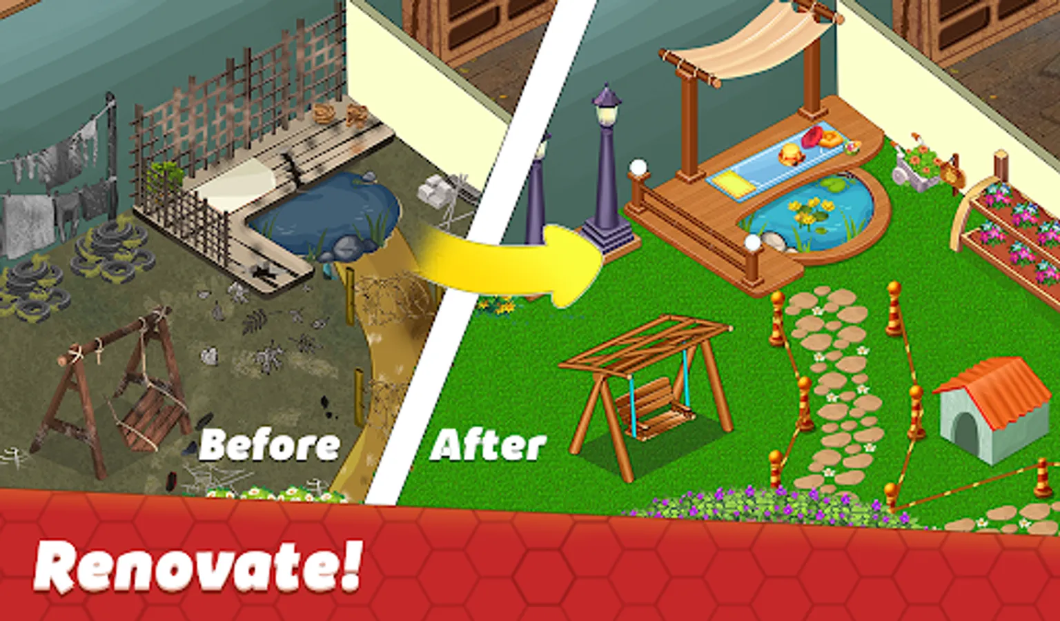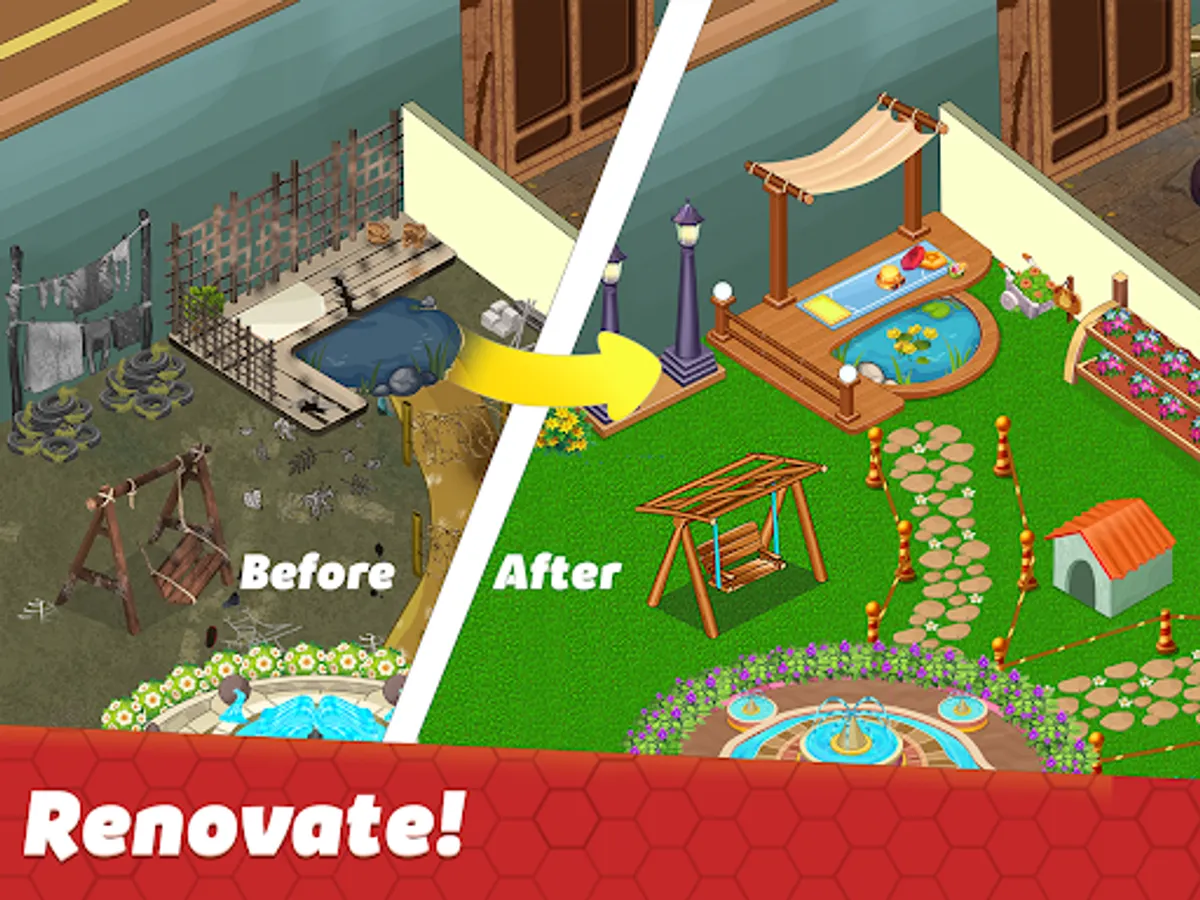 We have designed this renovate house games with every single detail and inspired from real life home design. With this merge fever and home making games, you will get: