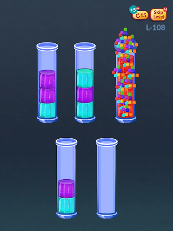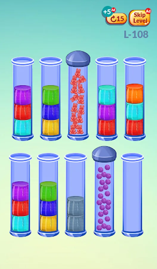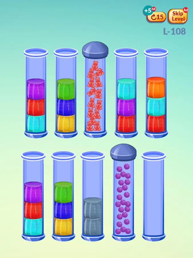 - If you fill entire tube with same colored jelly, puzzle is solved.