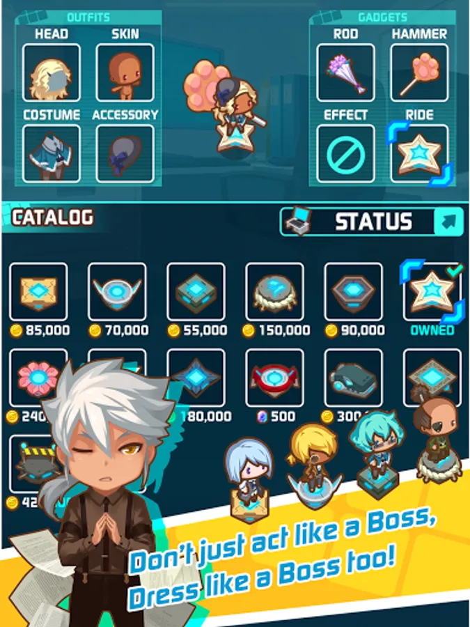 - Deep avatar system to customize yourself to be the ultimate boss!