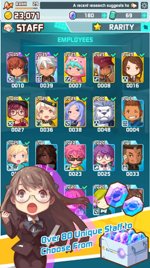 Your staff is the company’s best resource. The game features a large cast of colorful and unique characters each with their personal abilities and talents. Build up your dream team and become the next billion dollar unicorn!