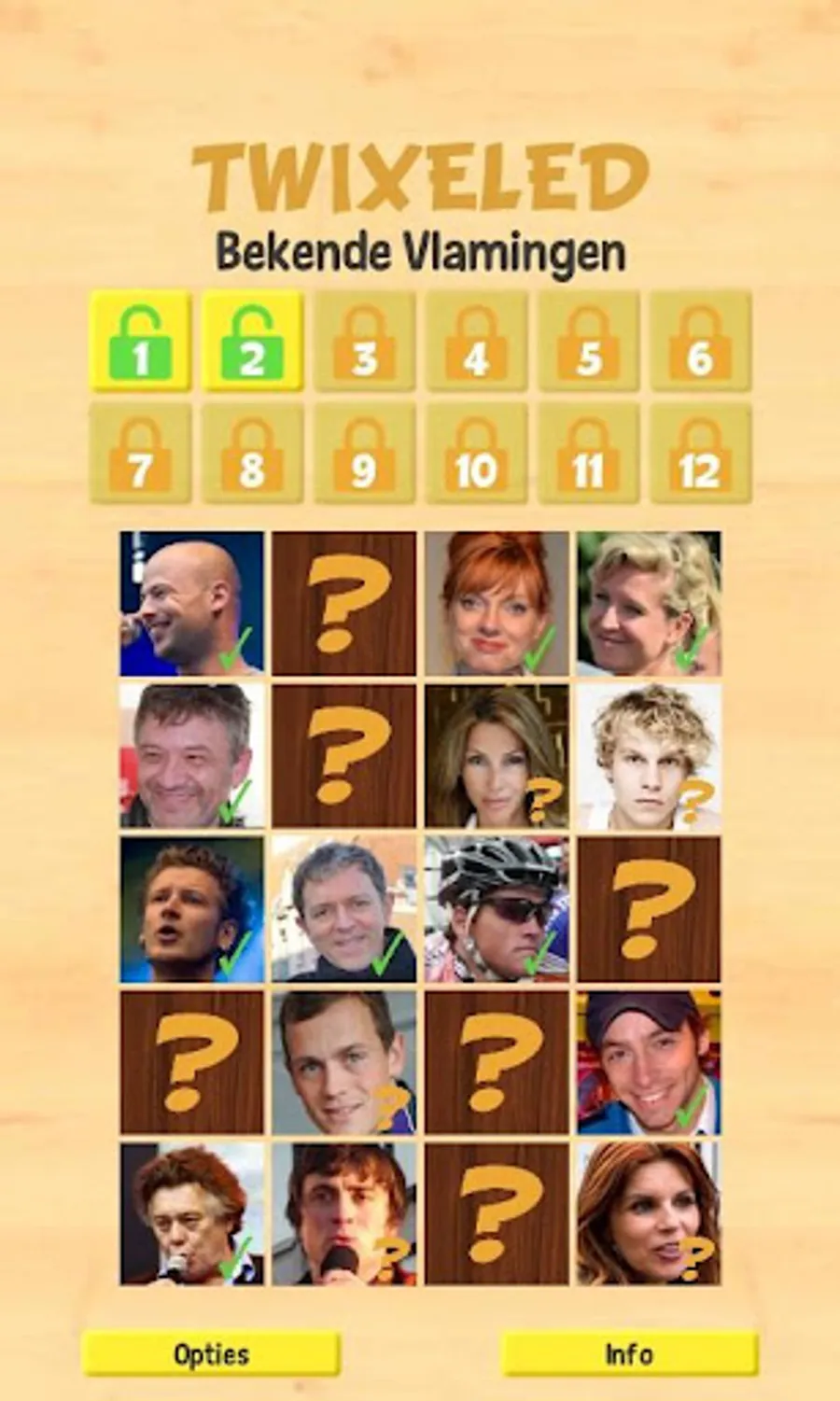 Test your knowledge of famous Flemings! Actors, athletes, writers, historical figures ... alemaal limited companies. Do you recognize them all? And do you know their names? The game features 240 well-known people from Flanders spread over 12 levels.