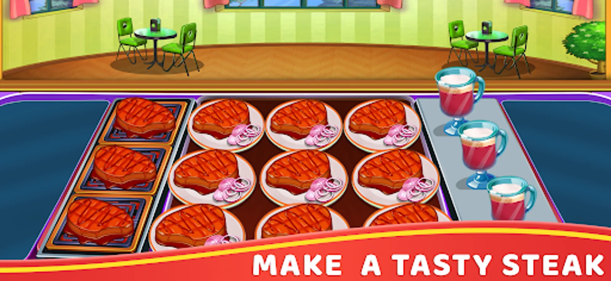 🔪 Become the burger shop king chef by cooking as fast as possible to earn money and get extra tips. Take the orders and make some delighting soda, cakes, juices, and sandwiches. Show that you can run your own amazing burger restaurant!