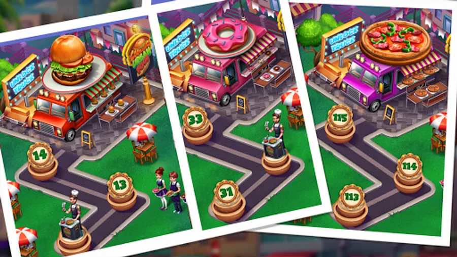 Unlock a new food truck every couple of levels, learn new street food recipes like burger, sandwich, donuts and more but also create the most beautiful platings in these addictive restaurant cooking games.