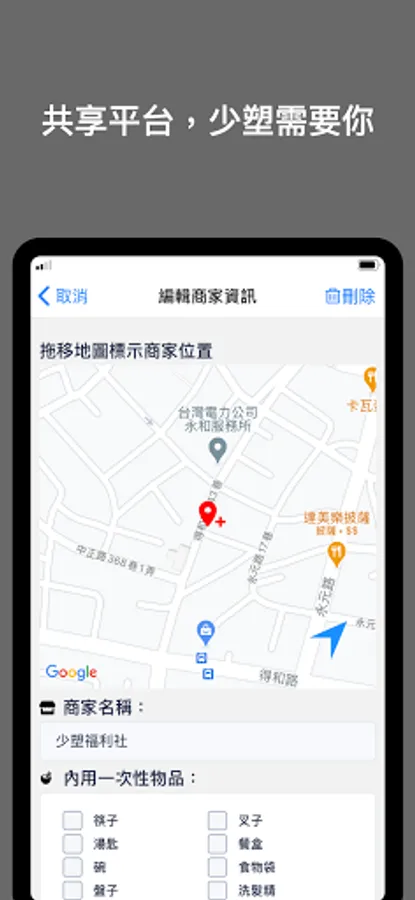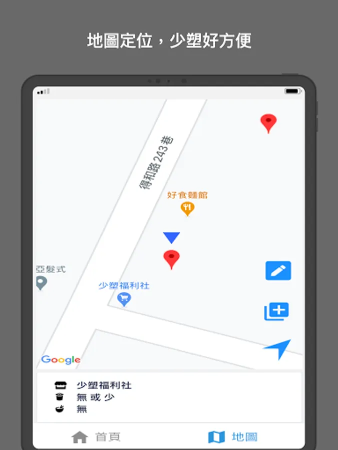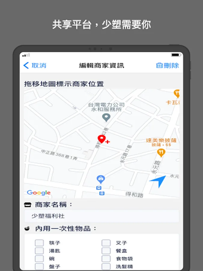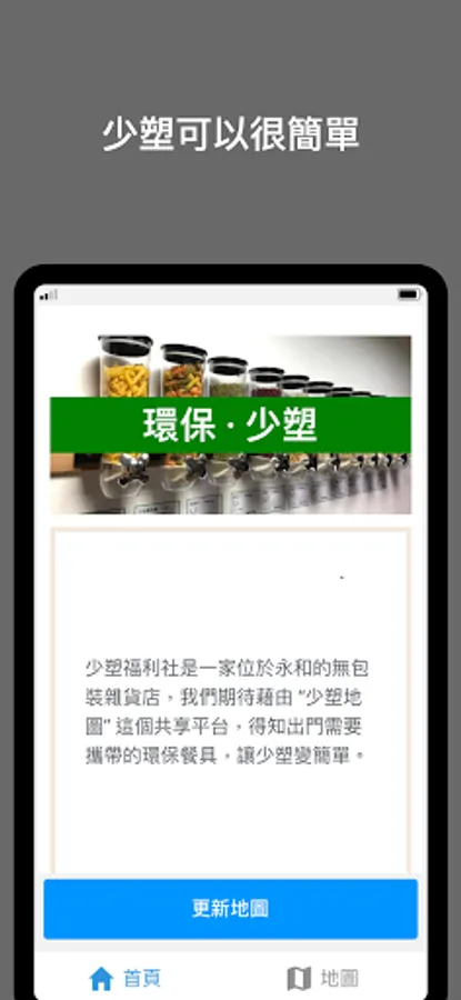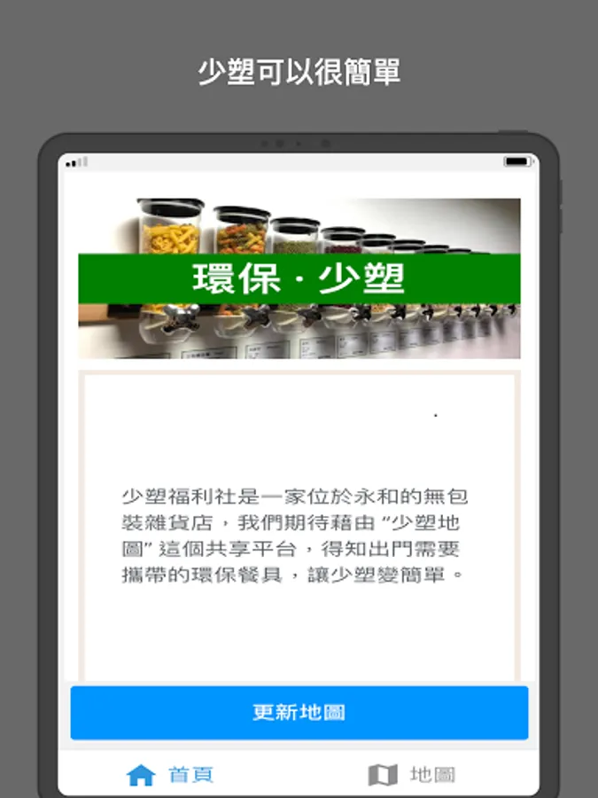少塑福利社是一家位無包裝雜貨店,我們期待藉由 “少塑地圖” 這個共享平台,得知少塑商家的位置和資訊,讓少塑變簡單。