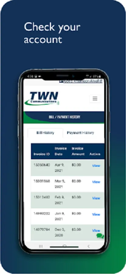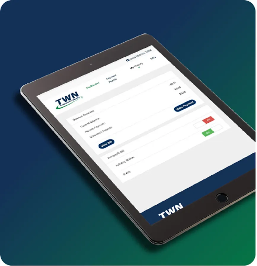 If you’re a TWN Communications Customer, we have great news. Paying your TWN Communications Internet and Phone bill doesn’t have to be a chore. Use our simple app to make payments and view payment history and account information. The My TWN app makes it easy for you to manage your TWN Communications account directly from your smartphone.