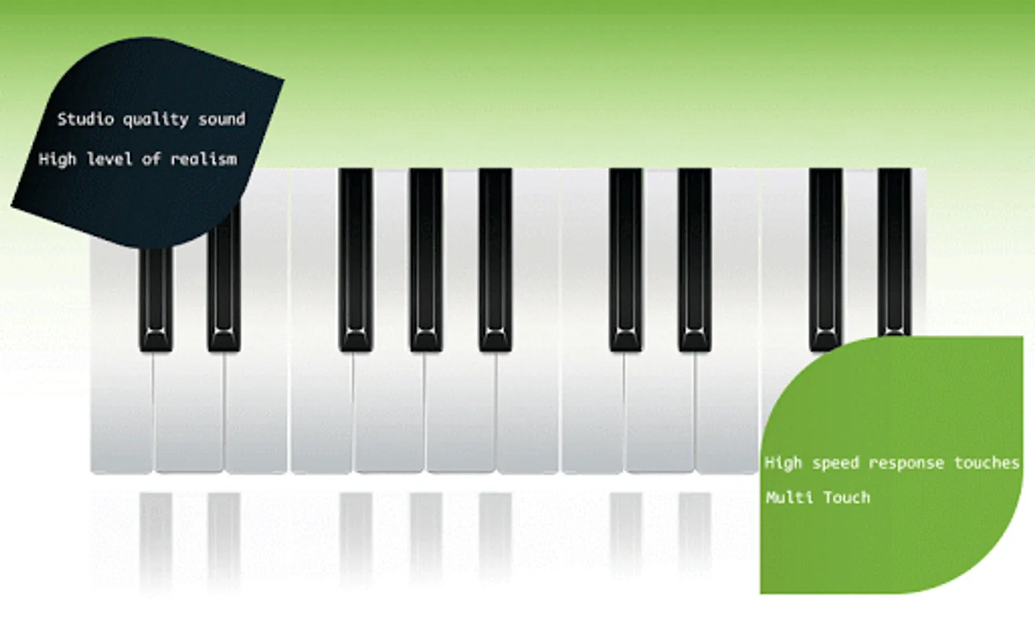 A clean, classy and responsive piano provides an elegant design of virtual piano that enables you to experience the piano on your phone ! It empowers you to innovate and entertain with music.