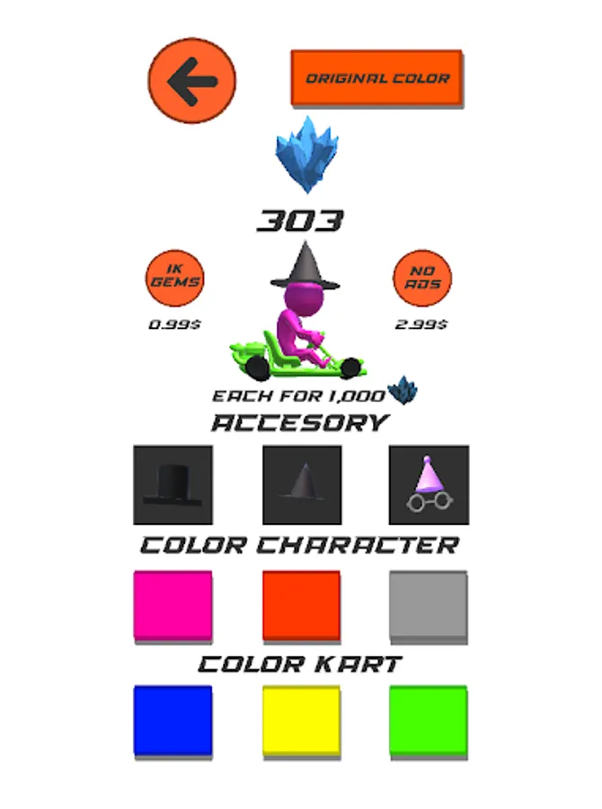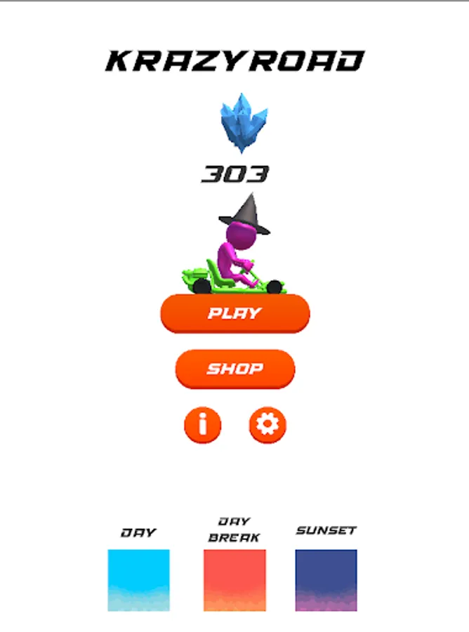 Krazy Road is an endlees runner where your objective is to move through the 3 different options on the road, avoiding obstacles and collecting gems along the way so that those gems multiply your results and be able to buy appearances in the store, and do not forget to use the ability to get small to move forward with fewer obstacles