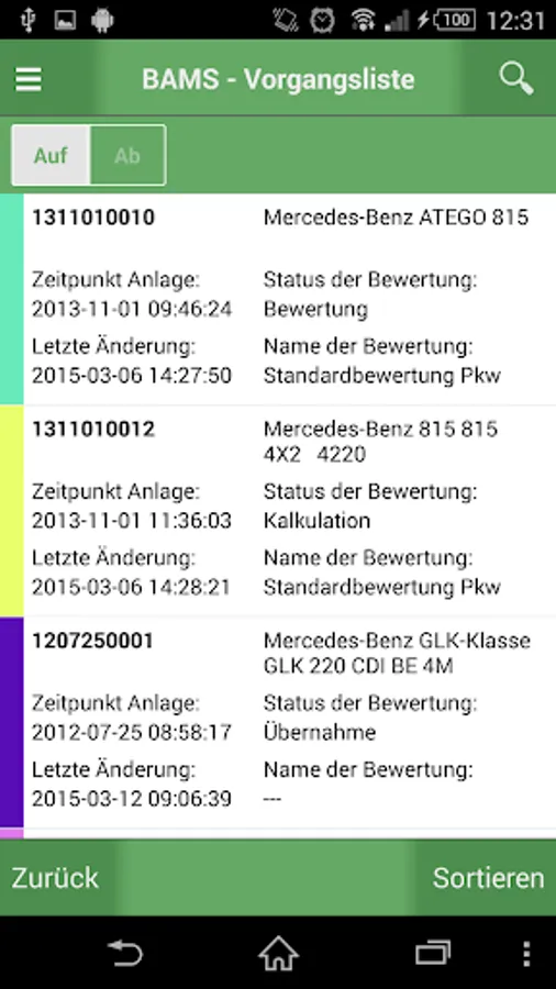 BAMS allows transparency in the vehicle reviews. Customer base vehicles can be evaluated directly. Unknown vehicles can be quickly and simply by FIN-query and provided with extensive information. About the interface to the DAT can be next to the master data and the actual residual values u. Ä. Determine. In addition to the damage calculation and a graphical damage detection is possible.