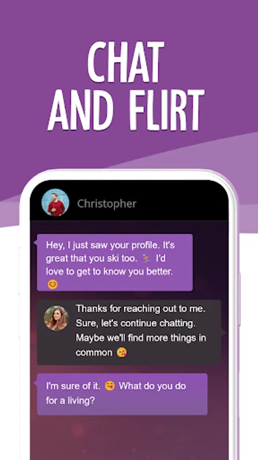 Flirt with other singles in our secure and private chat feature. Not just text messages - you can send private pictures and voice recordings too.
