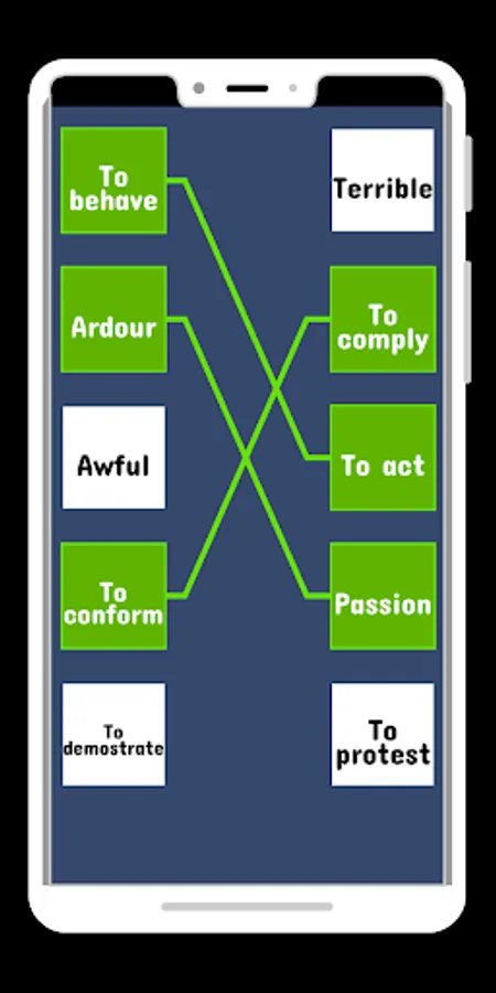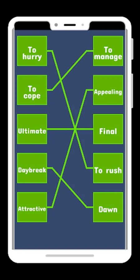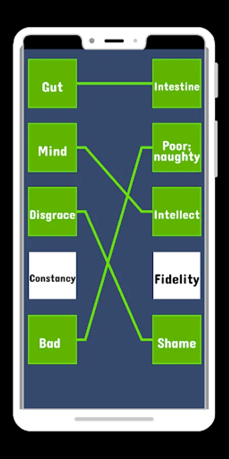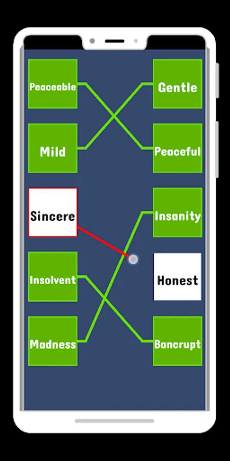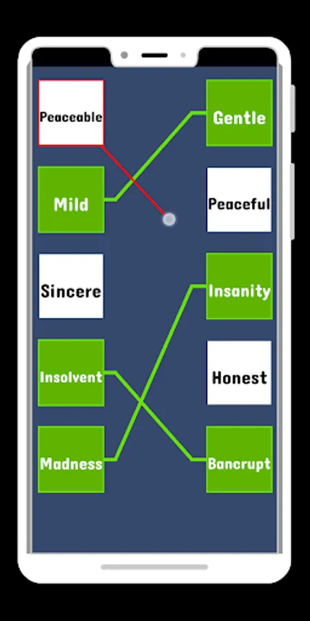 Similar matching puzzle game is a game in which there are two columns containing each column five boxes and in each box there is a different word. In each right side column words containing have exact same or similar meaning word and your game starts here that you have to drag a line between correct words.