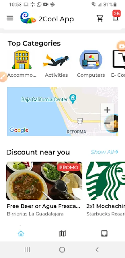 2Cool is a location-based app that shows you the stores, discounts and deals CLOSEST TO YOU! You can search for your next destination to plan ahead, you can “FAVORITE” businesses you like to easily find them later. Share any business, offer or deal with a click via WhatsApp, SMS, Email, Facebook, Instagram, Skype, etc.