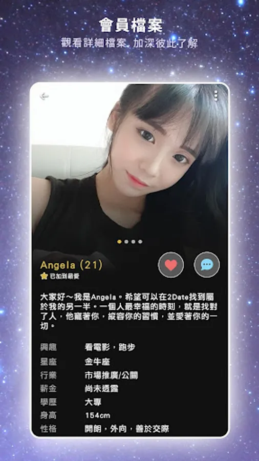 * 簡單開始,輕鬆交友 - 不知第一句開場白應說什麼? 我們會為您提供專業協助,就對方的興趣,職業等資料向您提供意見。