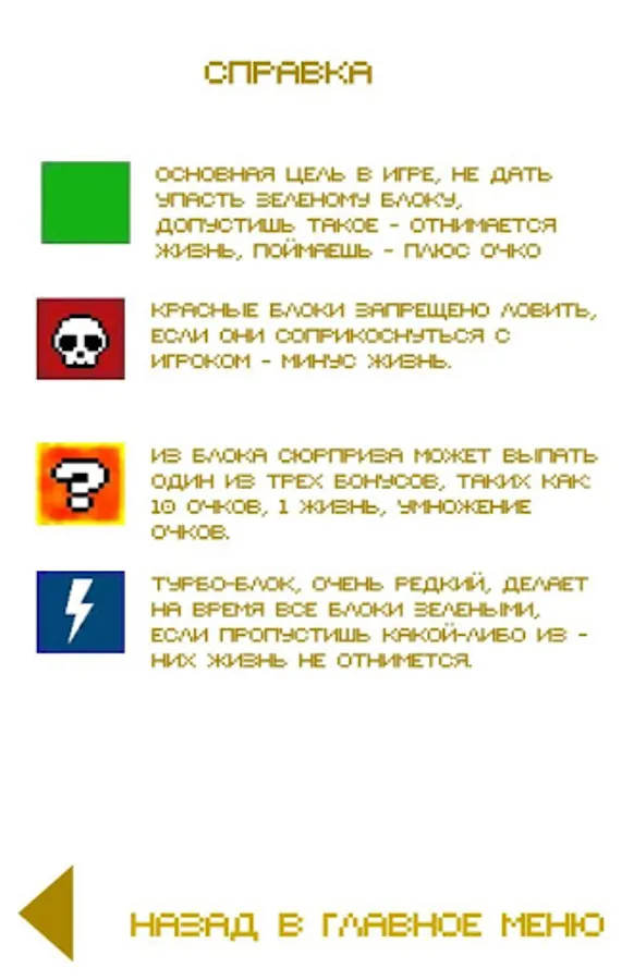 The main goal in the game, not to drop the green blocks, admit it - life is taken away, catch - a plus point.