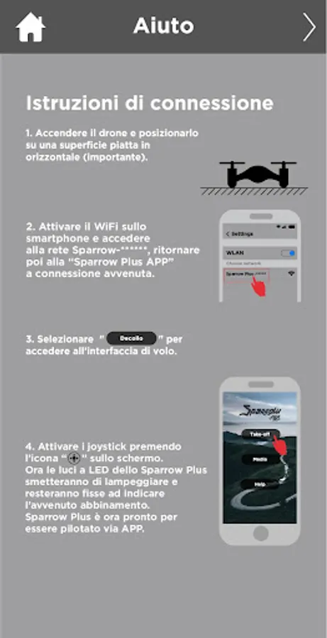 Control your TwoDots Sparrow Plus drone through this fantastic App. You can use your smartphone's screen as a FPV monitor to view images taken in real time from your drone while you record photos and videos. You can use your smartphone to directly control the flight of your drone with virtual cloches on the screen or use the motion sensor integrated in the device for a more intuitive flight. And the features of Falcon Pro do not end there: the drone also supports automatic take-off and landing, automatic maintenance of flight altitude and intelligent orientation.