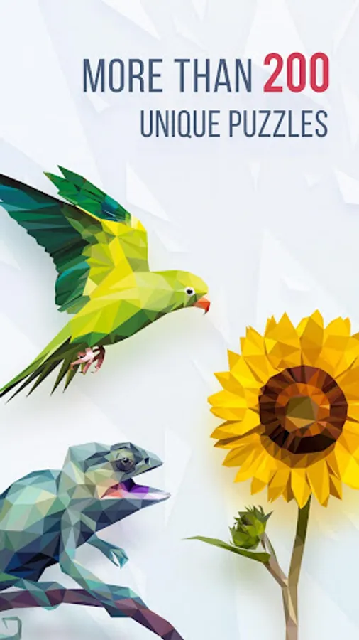 Each low poly puzzle presented to the player like colorful pieces of the image. The pieces are stationary, but the player can rotate them the entire 360 degrees like a poly art sphere to figure out the jigsaw puzzle.