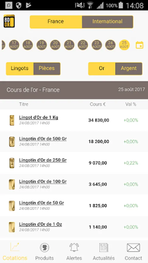 Find live international courses of Gold, of Silver, Platinum and Palladium. daily trading of bullion and bullion coins in gold and silver.