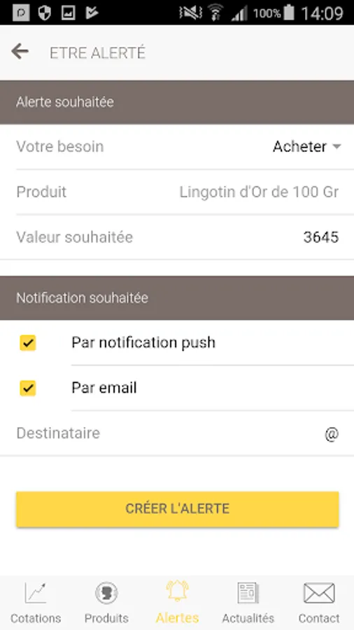 You can create alerts on all investment products. Just enter the amount to reach a sales projection or purchase, you will be notified instantly when the expected value is reached. These alerts do not engage you, this is a free tool allowing you to act very quickly if you wish.